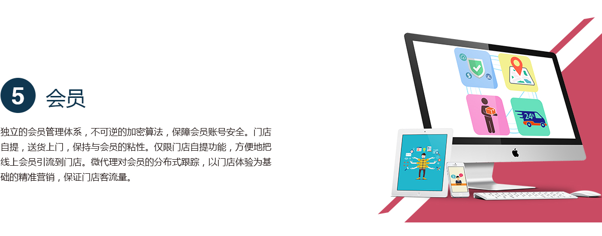 服务内容:电脑端、手机端。商品管理、会员管理、订单管理、门店管理、促销管理。